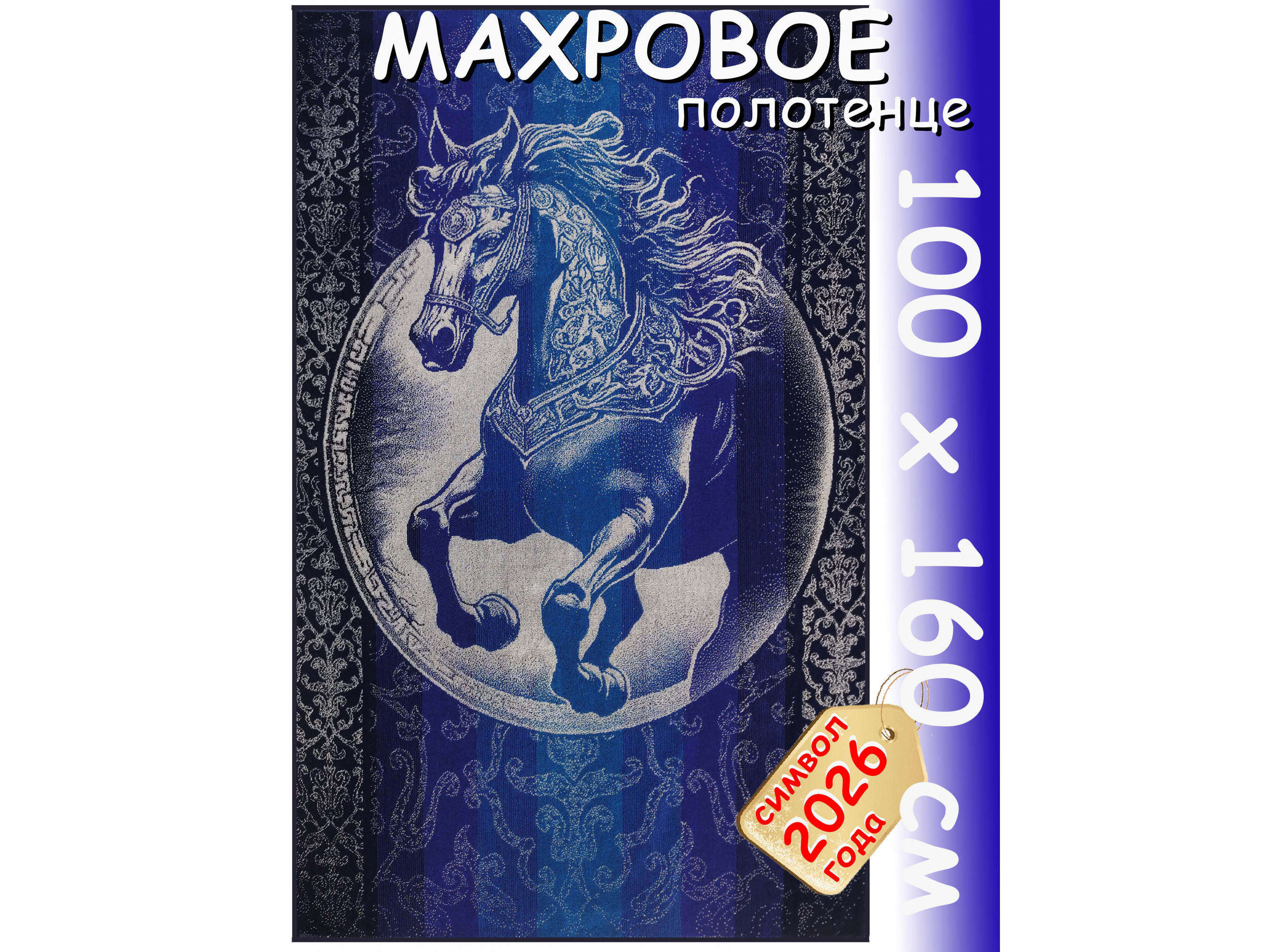 Полотенце махровое супербанное 100х160 см, рис. Сказочный конь