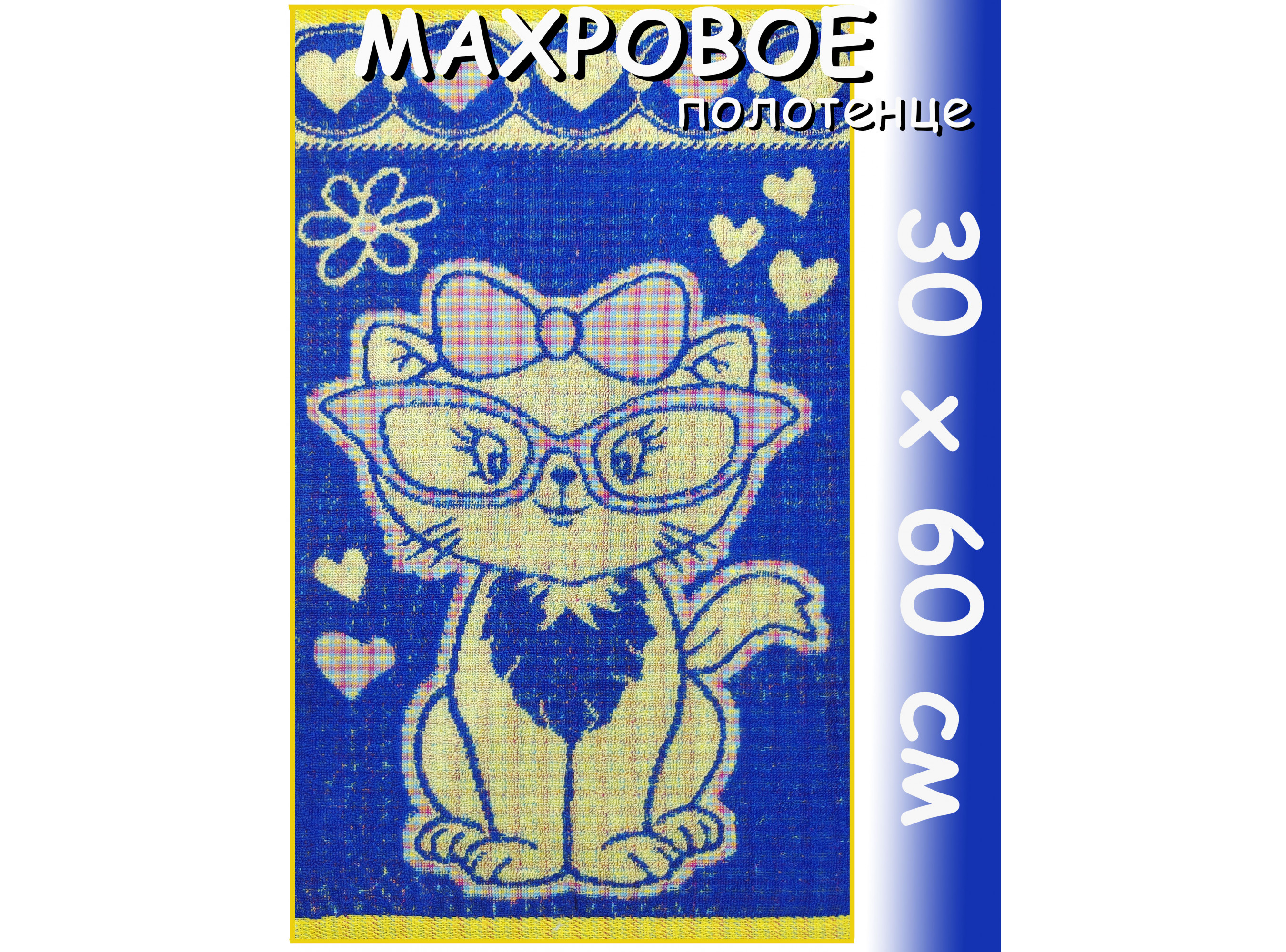 Полотенце махровое детское 30х60 см, Влюбленчик киска, синий
